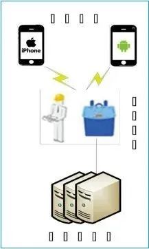 圖中,前端設備(可以是移動式也可以是固定式)完成對目標手機的號碼、短信、App日志、App數據等信息的獲取,并將用戶信息通過互聯網發送至數據分析服務器;分析服務器接收和保存前端設備發送的目標用戶信息,并對這些信息進行關聯分析,竊取用戶敏感信息。