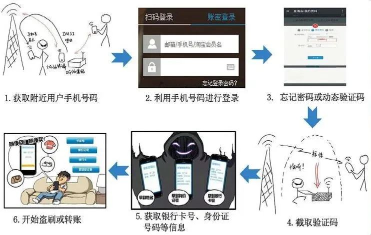 在公眾的印象中,“隔空取物”一般出現在魔術表演節目或仙俠小說的橋段中。其實,此類無觸式隔空盜刷現身于世的時間并不長,屬于新型電信詐騙案件,其工作原理說起來也并不復雜。我們日常使用的許多App登錄及操作,都可以通過手機號碼加短信驗證碼的方式實現,而手機號碼和短信內容可以通過專用電子設備來獲取。即,作案人員首先使用偵碼設備獲取一定范圍內用戶的手機號碼和短信內容,然后利用獲取的手機號登錄支付平臺,再用嗅探設備獲取手機驗證碼,最后登錄平臺操控用戶資金賬戶進行轉賬或消費。