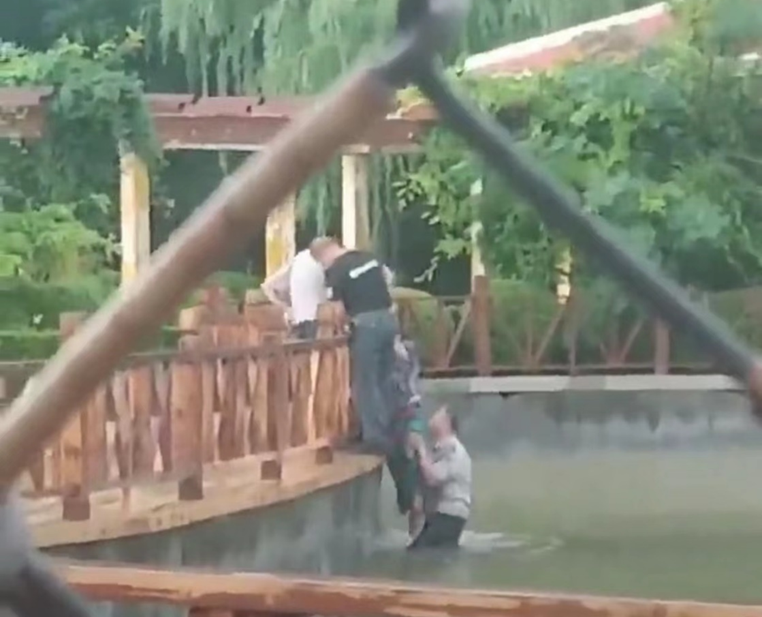 兒童公園有一名女子落水,保安員辛慶祝下水將其救起。網(wǎng)友提供視頻顯示,在該公園人工湖內(nèi),一名保安下水將女子托起,另外兩人站在欄桿附近,用力將女子拉上岸邊。辛慶祝回憶說(shuō),女子被救上岸后并無(wú)大礙,隨后被他送離公園,辛慶祝說(shuō)只是舉手之勞而已。他的舉手之勞溫暖了這座城市,更是我們身邊的凡人英雄,為他們點(diǎn)贊。