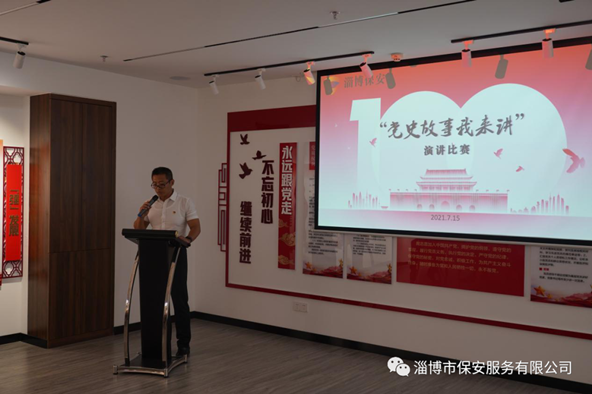為慶祝中國共產(chǎn)黨成立100周年,回顧黨的百年奮進(jìn)歲月,引導(dǎo)干部職工學(xué)黨史、知黨恩、跟黨走,感悟黨的光輝歷程,傳承黨的優(yōu)良傳統(tǒng),進(jìn)一步推動(dòng)黨史學(xué)習(xí)教育走深走實(shí),淄博市保安服務(wù)有限公司黨委于7月15日下午舉辦“黨史故事我來講”專題演講比賽。